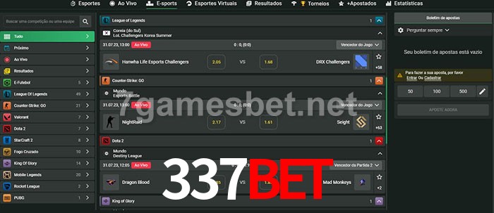 O 337BET oferece uma grande seleção de opções de apostas em e-sports com probabilidades competitivas